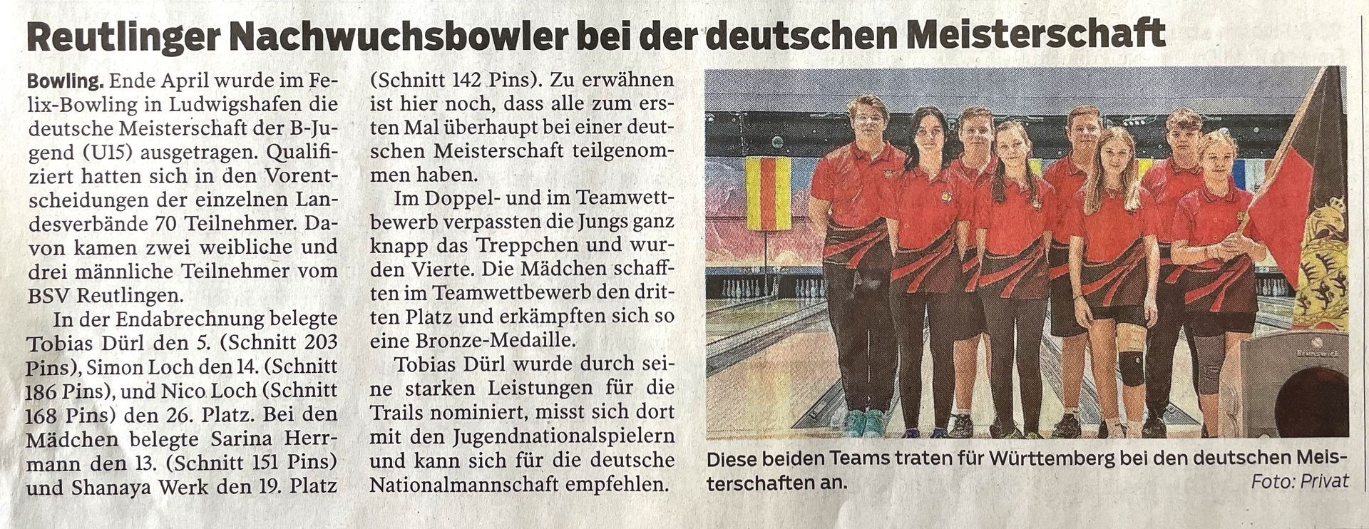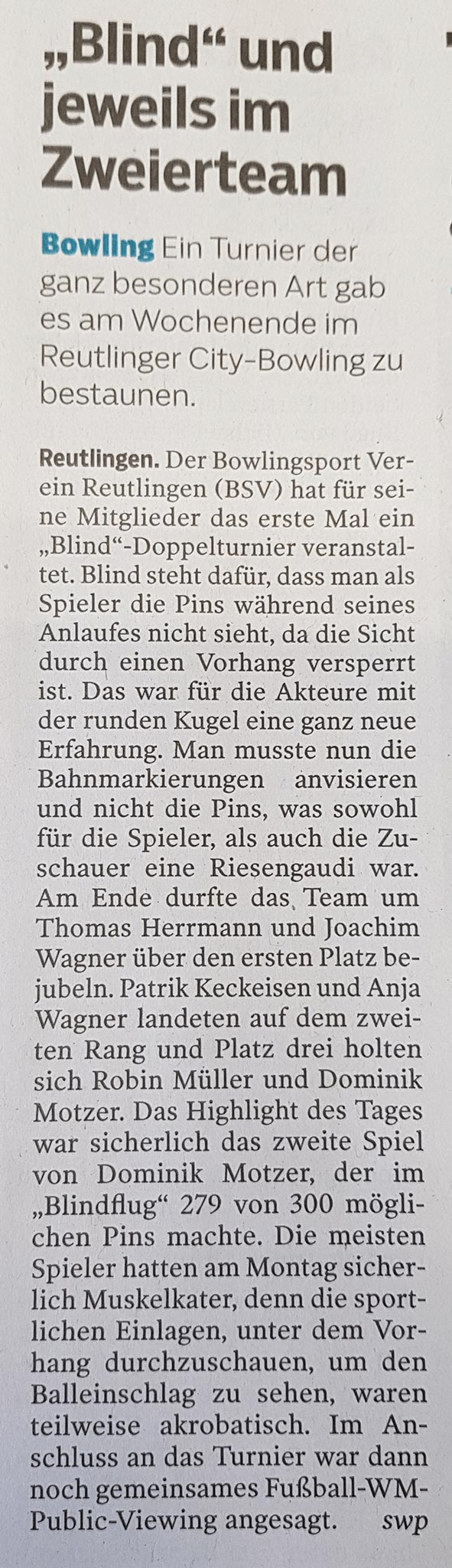 Das Reutlinger Doppel Robin Müller und Moritz Uber verpassen wegen 14 Pins das Halbfinale !