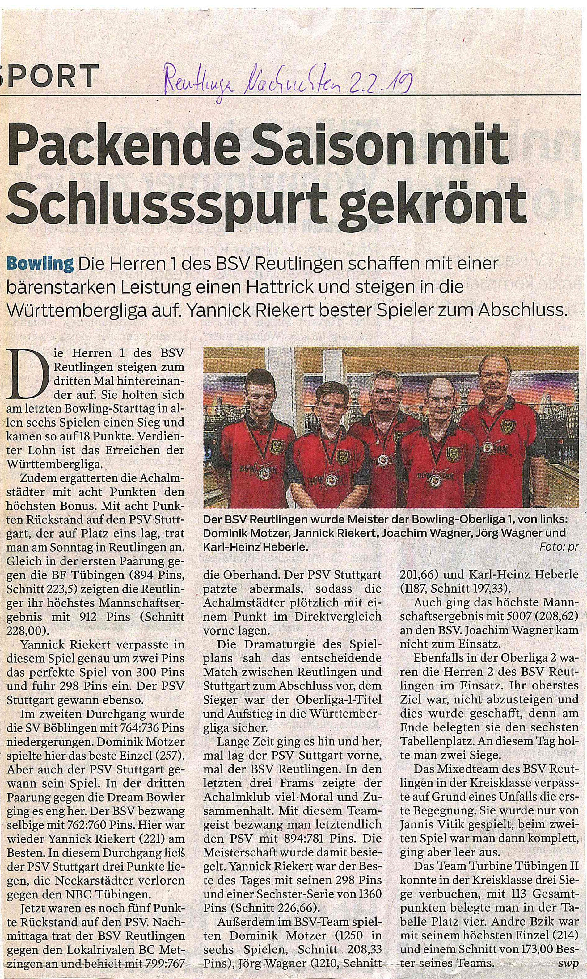 Reutlinger Nachrichten, 02.02.19
